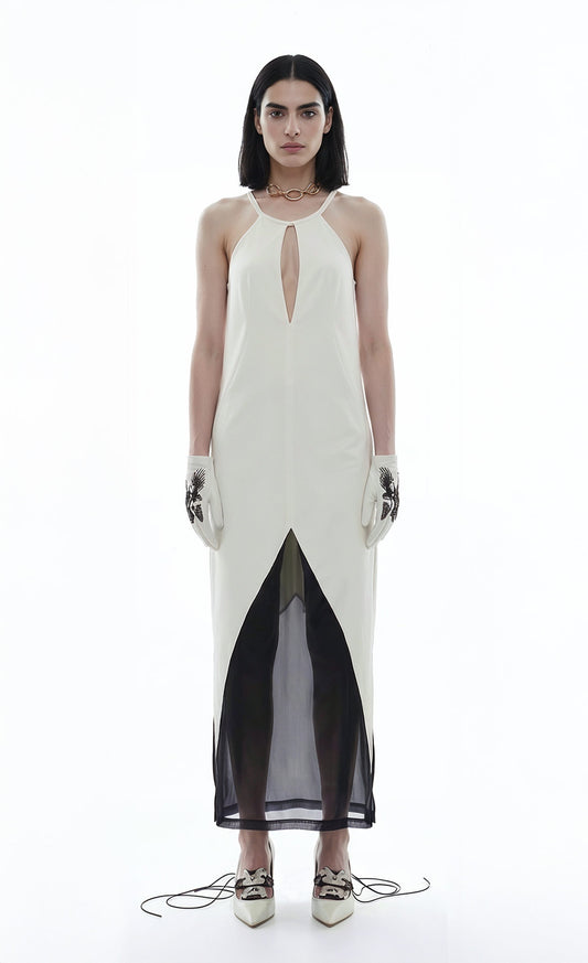 ABI, robe blanche longue à col travaillé