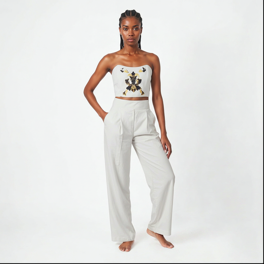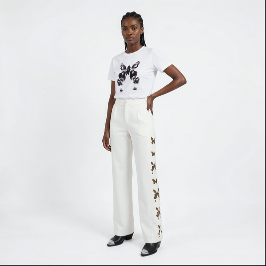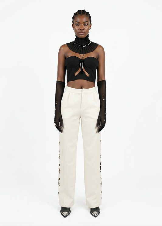 AMANTIA, pantalon blanc avec découpes au laser