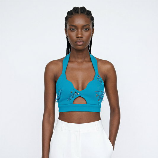ARTA, brassière turquoise avec broderie