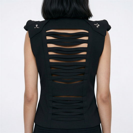 AVA, veste sans manches avec dos entrelacé dans un esprit "corset"