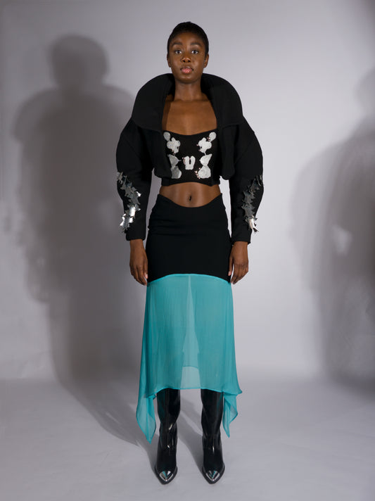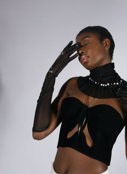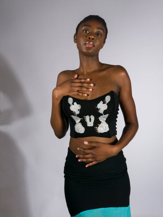 ARIOLA, bustier noir avec accessoire brillant imprimé en 3D