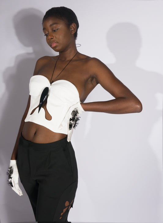 ARIOLA, bustier blanc avec accessoire brillant impression 3D