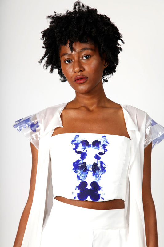 AREND, bustier blanc à imprimé unique à chaque pièce